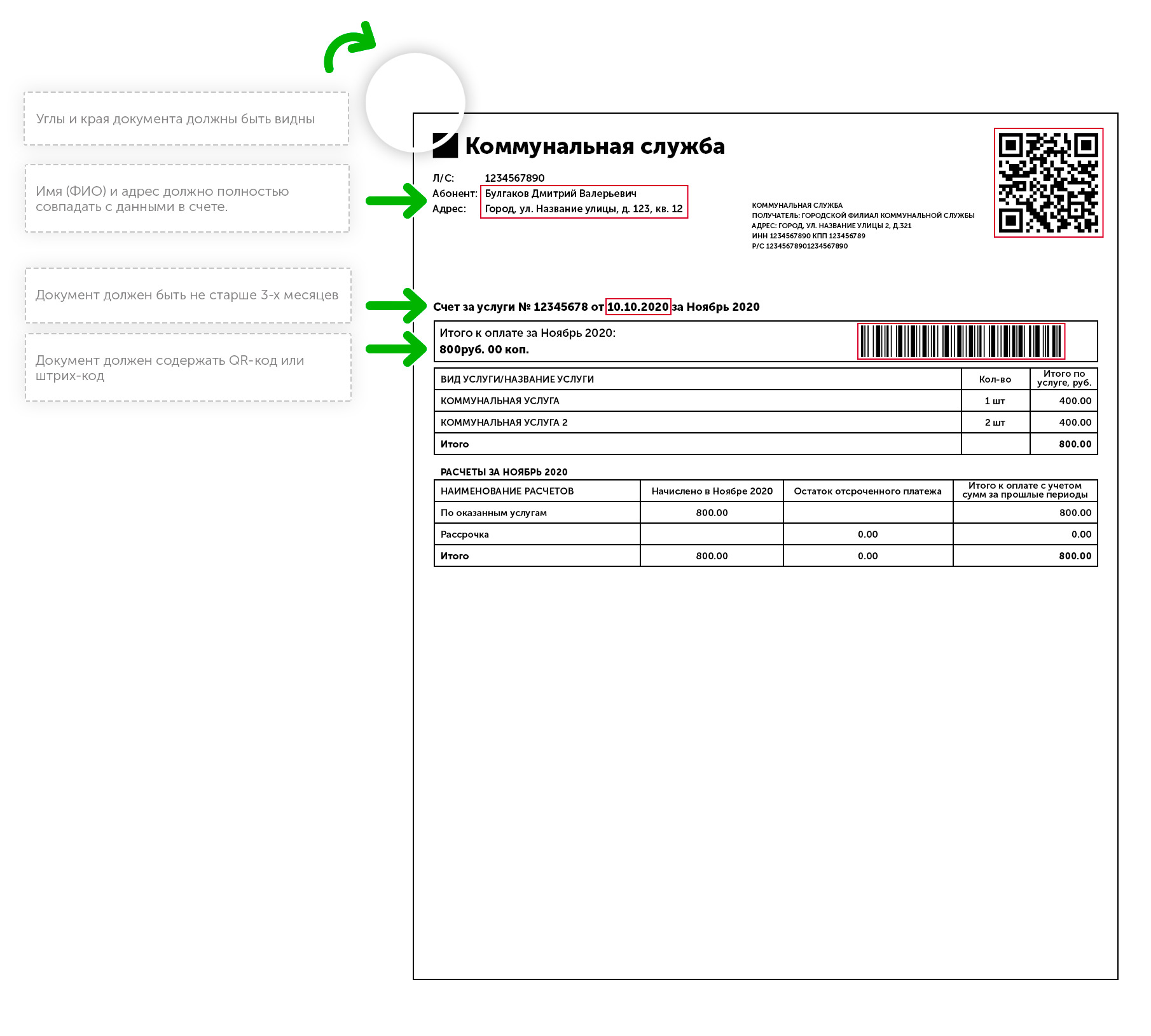 - Убедитесь в том, что на документе есть ваше имя, адрес, электронная печать и подпись или штрихкод/qr-код.